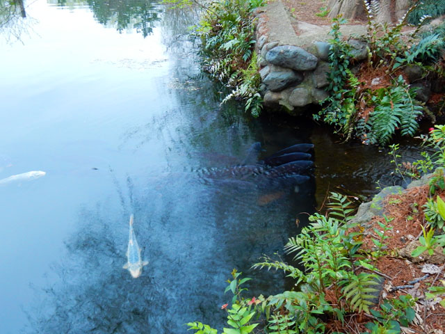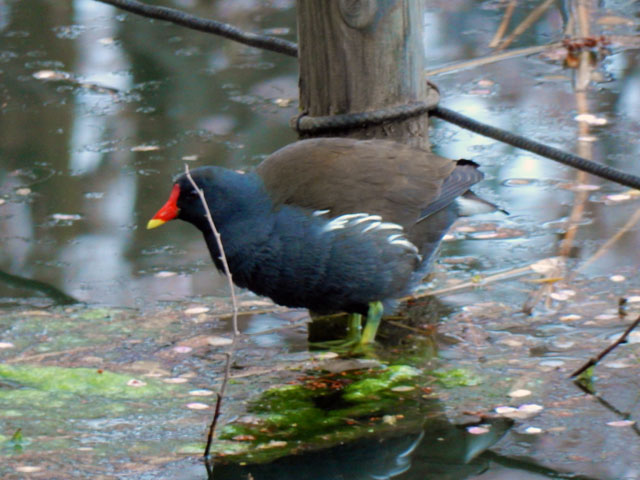 池の鯉たちが湧き水の流れ込んでいる場所に集まっていたので、まだ水温は低くて少しでも温かい場所を求めて集まっているのかなぁ・・・?と思いました。・°・。上の池の沖合にある葦の島から、1羽のバンさんがこちらに向かって泳いで参りました。。口元を見るとアオミドロがとろろ昆布のように垂れ下がっておりました・・・そして池の杭の周りに溜まっていたアオミドロを、まるで素麺を召し上がるかのように器用に食べ始めました。・°・。水掻きがないので泳ぐ時の姿勢が、鳩が歩く時みたいに首を前後にひょこひょこと振っている姿が、どことなくユーモラスで好きです♪