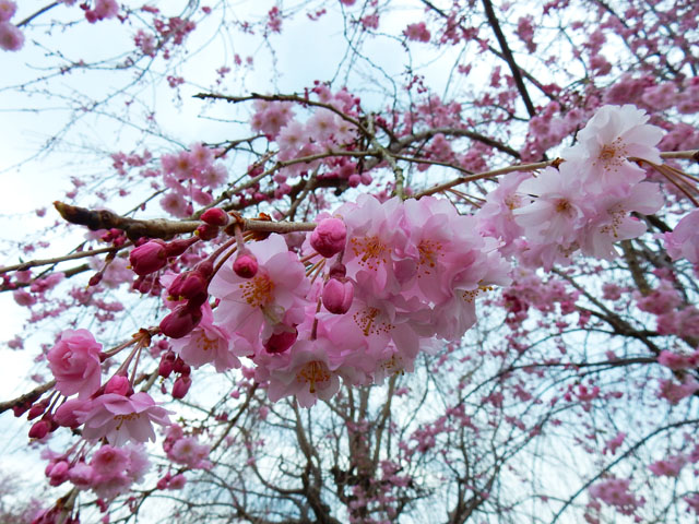 史跡公園に着くと枝垂れ桜が咲いておりましが、同じ品種でも樹によって咲き始めにばらつきが大きいようで、まだほとんど咲いていないのから既に四分咲きくらいまで様々でした。・°・。*手の平に載せているのは近くに落ちていた染井吉野の花です。・°・。*