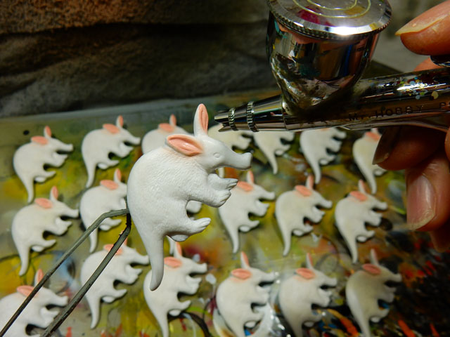近所のあちらこちらで、水仙の様々な品種の花をよく見かけるようになりました♪ 写真は雑木林の外れの梅林で見かけたラッパスイセンです。・°・。ブローチ作品の方は塗装段階へと進みました。写真はツチブタの耳の中のピンク色を、エアブラシで吹き付け塗装しているところです。白い身体にピンクの耳の色だけの状態だと、豚というよりまるでウサギのようです(^^) 連日の過密スケジュールでここ数日疲労感が蓄積しております。。先日のイベントで聴いた さかなクンのお話によると、カツオにはアンセリンというアミノ酸の一種が含まれていて、疲労回復効果があるそうですが、確かにカツオをいただいた後には、すっきりと疲労感が和らぐような気もしておりました。・°・。閉店間際のスーパーでたたきなどをゲットした時には、写真のように生姜醤油漬けにして翌日いただくのも好きです(⌒‐⌒)♪ アトリエ☆イボヤギ 木村大介