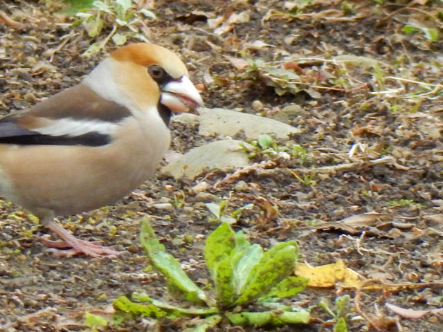 こちらの雑木林周辺では、ドバトよりもキジバトの姿をよく目にしますが、羽の色が美しくて振る舞いにもどこか気品を感じます。・°・。桜の枝の上に1羽のシメがおりましたが、地面に降りて来てツグミやムクドリたちといっしょになって、土をほじくり返しては餌を探しておりました。・°・。*