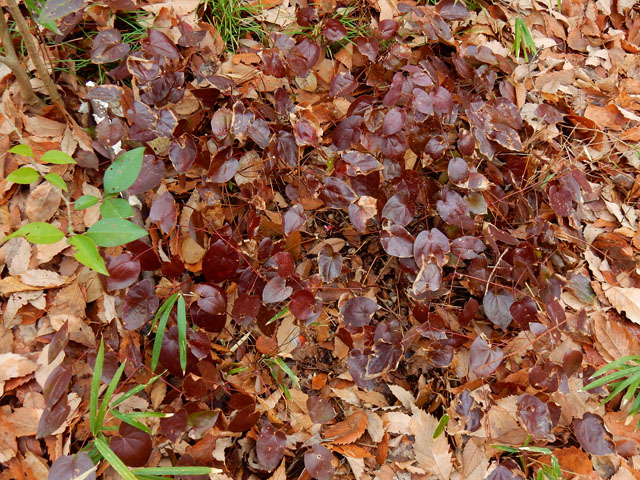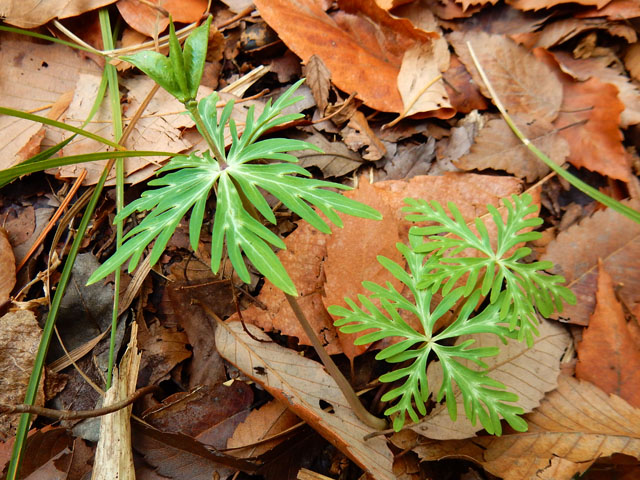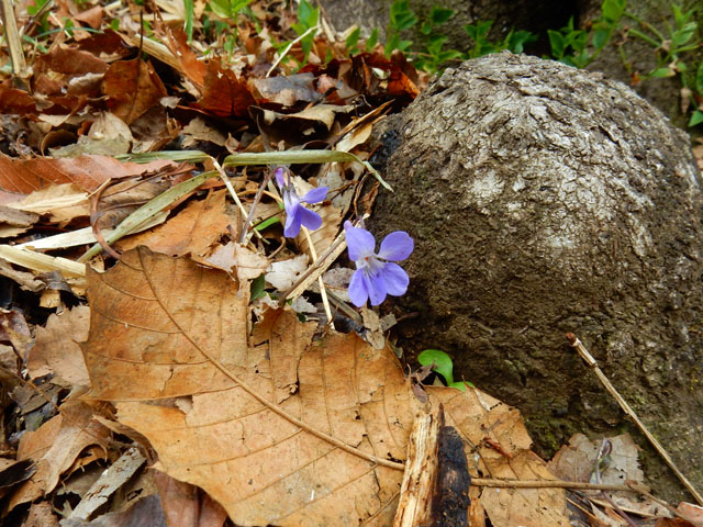 週末の雑木林散策のつづきです。・°・。林内ではタチツボスミレの花もよく見かけました。茶色の中で青紫色はよく目立つので、小さくともその姿は遠くからでも見つけやすいです♪ 落ち葉の間からイチリンソウでしょうか?切れ込みの深い美しい葉が展開しておりました。・°・。赤紫色に紅葉したイチリンソウの葉も見つけました。わたくしはイチリンソウの花が大好きなので、早く花が咲かないかなぁ・・と今から待ち遠しく思いました。・°・。*