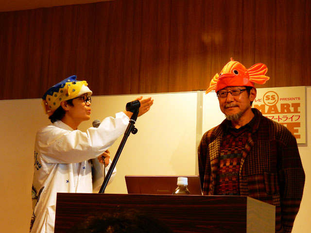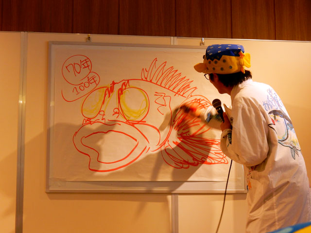 友人に誘われて先週に引き続き、今週もさかなクンの出演する催しに参加いたしました。・°・。本日は銀座三越で開催されている「ブルーカーボン連続セミナー」の最終日で、「ブルーカーボンの未来」というプログラムを聴講いたしました。ブルーカーボンとは海洋生態系に蓄積される炭素のことで、新たな温暖化防止対策として期待されているものだと聞いておりましたが、今回のセミナーに参加したことで、その仕組みと理解が大変に進みました(^-^ゞ 写真はさかなクンと対談しているキンキくんこと、九州工業大学の浦環先生です。キンキとはカサゴ亜目キチジ科の標準和名はキチジという深海魚で、北海道ではキンキの名で流通しており、旬には脂がよくのって美味な高級魚とのことで、浦先生はそのキンキに惚れ込んで帽子を特注で作ってもらったそうです(^^) 今回は潜水調査ロボットの開発と、その可能性についてお話くださいました。さかなクンが描いているのはキンキのイラストですが、左上の数字は推定されているキンキの寿命とのことで、その意外な長命に大変驚きました(°▽°) セミナーの後半ではブルーカーボン研究の第一人者の刑部真弘教授と講師のみなさんでトークセッションも行われて、一般の方々にも楽しみながら解りやすく説明してくださいました。・°・。◎