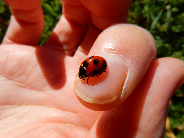 うちの近所でも春の草花がたくさん咲いて、だいぶにぎやかになって参りました(^-^) 畑地の外れにある野原では、細かい毛の密に生えた帽子をかぶったようなホトケノザや、オオイヌノフグリがよく目につきました。・°・。となりで友人がナナホシテントウさんを見つけて、そっと指先に誘導いたしました。わたくしも辺りを見回すと、他にもナナホシさんの姿をいくつか見かけました。・°・。成虫がこれだけ活動的になっているということは、きっと獲物のアブラムシさんたちも陽気に誘われて、活動開始していることと思われましたが、今回はまだその姿を見かけませんでした。・°・。2017/02/24(金) アトリエ☆イボヤギ 木村大介