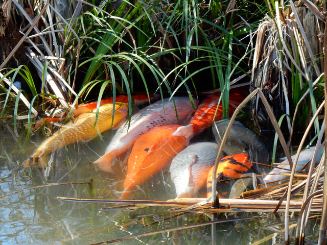 〈本日のタイトル解説:『 湧水に 寄り添い暖取る 池の鯉。・°・。>°))))彡 』〉