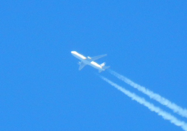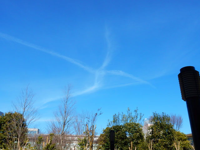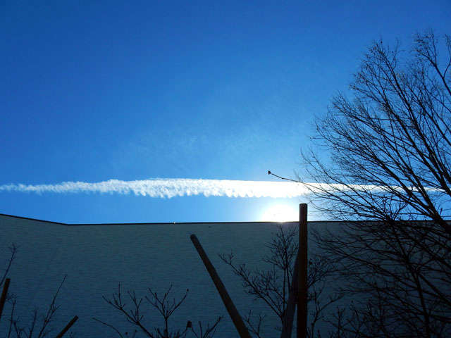 旅客機の航路になっている拙宅周辺では、空がよく晴れていると飛行機雲がきれいに見えます。・°・。先日も真っ青な空に幾本もの白いラインが描かれてゆきましたが、そのうちにクロス模様も現れたりして、観ていて飽きません。・°・。(^^)