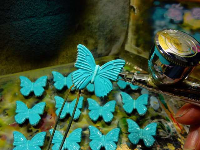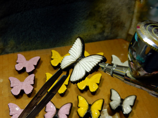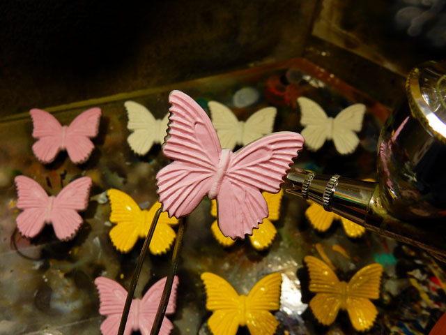 昨日の春色蝶シリーズに加えて、人気のターコイズカラーも塗装を進めました。この色は手持ちの塗料の中に近いものが無かったので、3色を調合して色を作成いたしました。わたくしの作品に用いる大抵の色は、既存色には無いので自前で調色しておりますが、このターコイズ色はなかなか思うように発色させられず、初めて調合する際には試行錯誤して創り出したものでした。・°・。苦心を重ねた甲斐あって、ターコイズ蝶はおかげさまで大変人気をいただくカラーとなっております。・°・。(*'-'*) チリ産の2色のセットの種無し・皮ごと食べられるぶどうを半値引きでゲットしました。食事の支度をしている間などに、ポイポイと口に入れて食べられるので、空腹を紛らすのにもとても重宝しております(o^-^o)