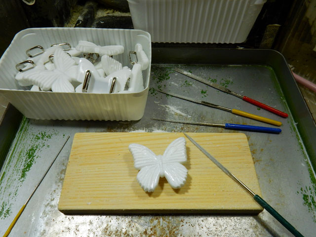 本日もレリーフ作品の制作に取り組みました。左端の写真は、帯留め作品の中でもご好評をいただいております、モルフォ蝶タイプの作品です。羽の輪郭がリアス式海岸のように入り組んでいるため、バリ取りを行う際には断面が正三角形の棒ヤスリを用いております。部分によっては丸形や、かまぼこ形のヤスリなどを使い分けて、輪郭が綺麗に滑らかになるように仕上げてまいります。・°・。◎ 昨日訪れた近所の梅林の根元で、友人が厚く積もった落ち葉の下から、僅かに頭を覗かせていたスミレを一株見つけました。そっと落ち葉をのけると、タチツボスミレでしょうか・・?青々とした葉が顔を出しました。・°・。洗濯物を取り込もうと表に出ると、夕闇迫る西の空に月齢約2.5の細い月が凛として輝いておりました。・°・。空が澄んでいるせいか、月の影になった部分の地球照も美しく見えておりました。・°・。●☆ アトリエ☆イボヤギ 木村大介