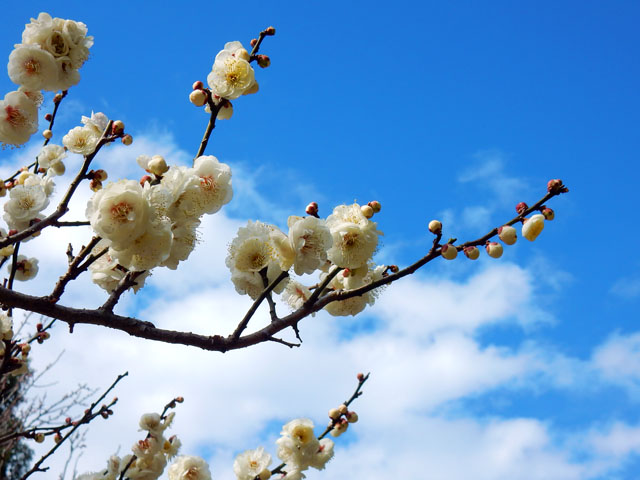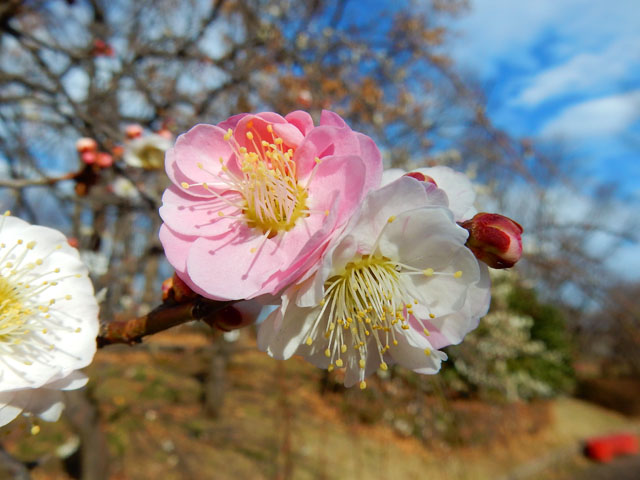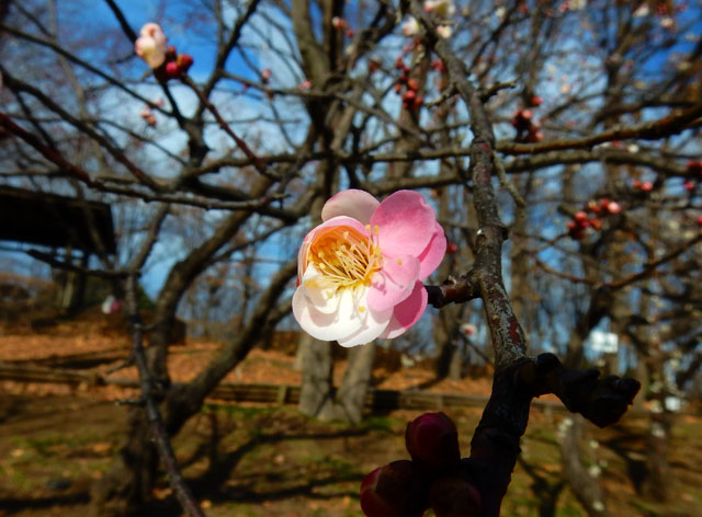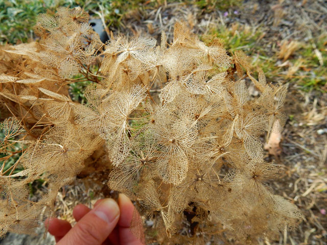 園内のケヤキの樹皮には、ハラビロカマキリさんの卵鞘が産み付けられておりました。暖かな陽射しを受けて、中のタマゴたちは孵化の時をじっと待っていることと思います。・°・。時折吹く強い風に煽られて、薄茶色のふわふわとした塊が転がってまいりました。拾い上げるとそれは近くの紫陽花園で咲いていたと思われる、アジサイの花の支脈だけが枯れ残ったものでした。細かい部分まで綺麗に残っていてとても印象的でした。・°・。広い園内には紅白や黄緑色系など様々な品種の梅が植えられていて、目と鼻を楽しませてくれました。・°・。*