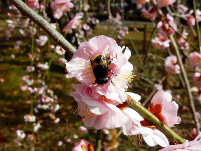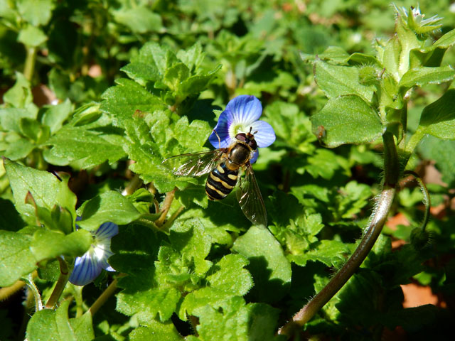 本日はもっぱら曇りの予報が出ておりましたが、思いの外晴れ間が拡がって真っ青な空も望める気持ちのよいお天気となりました。・°・。府中市南部の多摩川沿いにある、郷土の森へ開催中の「梅まつりに」出掛けました。・°・。最寄りの駅から向かう道すがら、桜の樹の下に広がる野原ではオオイヌノフグリがたくさん開いておりました。・°・。明るい陽だまりではハナアブさんが花々を訪れておりました。その脇で友人がノビルを見つけて引き抜くと、食べでのありそうな大きな球根が採れました♪ 今回は持ち帰る予定はなかったので、もう一度地面に埋め戻しました。・°・。◎ ヒメオドリコソウも少し咲き出しておりました*