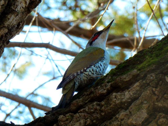 ヒヨドリに気を取られている脇を大きめの鳥が横切りました・・なんだろうと留まった樹の後ろにそっと周ってみると。。それはアオゲラさんでした! 地元の雑木林で見かけて以来二度目の遭遇に大変感激しました(≧▽≦) 前回よりも距離はだいぶ近くで観られたので、その羽色の美しさや、表情などもよく分かってしばらく見惚れてしまいました。・°・。*