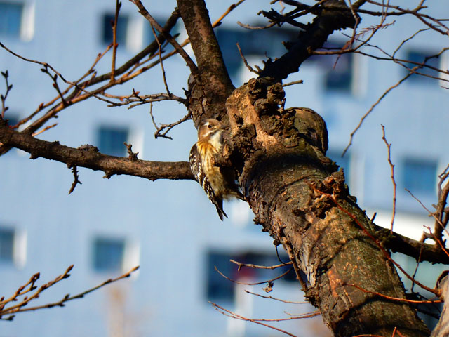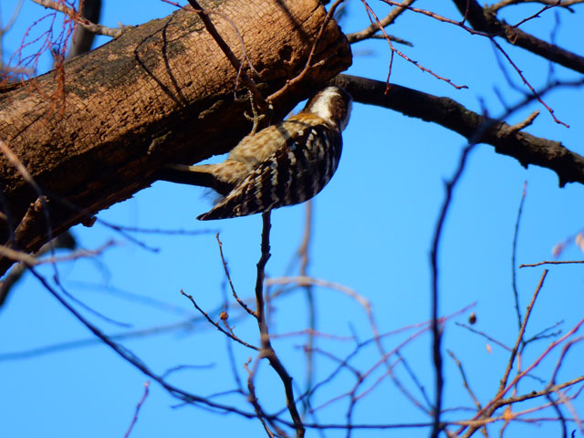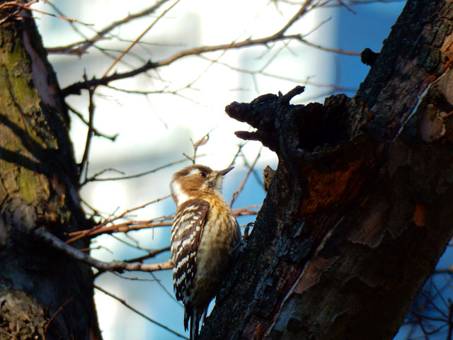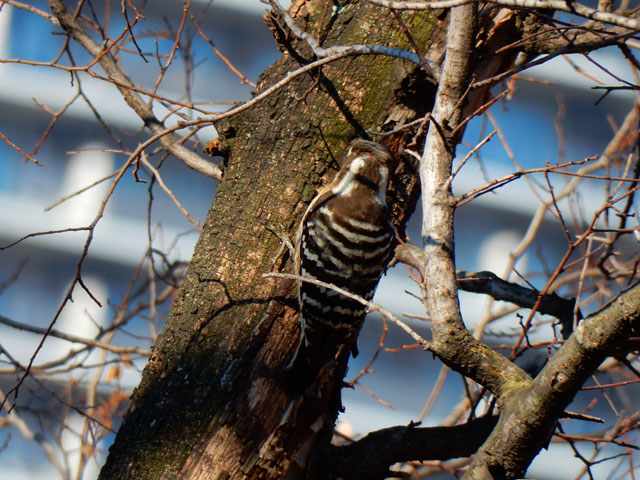 最近野鳥の観察をする機会が増えてから、実は身近にも日本に棲むキツツキの仲間では最小の、コゲラさんがたくさん生息していることに気が付きました。・°・。住み始めて約10年になる今のアパート周辺には緑が多くて、うちの裏庭にも時折その姿を垣間見ることはございましたが、近くの雑木林にはかなりの個体数がいることを知りました。・°・。そして先日、上野ZOOを訪れた際には、不忍池の周辺でもその姿を観ることが出来ました。・°・。鳴き声を覚えたので、姿が見えなくても頭上で「ギィー」という高めの声を耳にすれば、見上げたこずえのどこかに、特徴的な背中のシマシマ模様と、樹肌を機敏に動きまわる姿を見つけることが出来るようになりました。・°・。◎ 小さな身体でも、樹を突付く軽快な音は遠く離れていても聴こえて来るので、その力強さに感心させられます。・°・。*