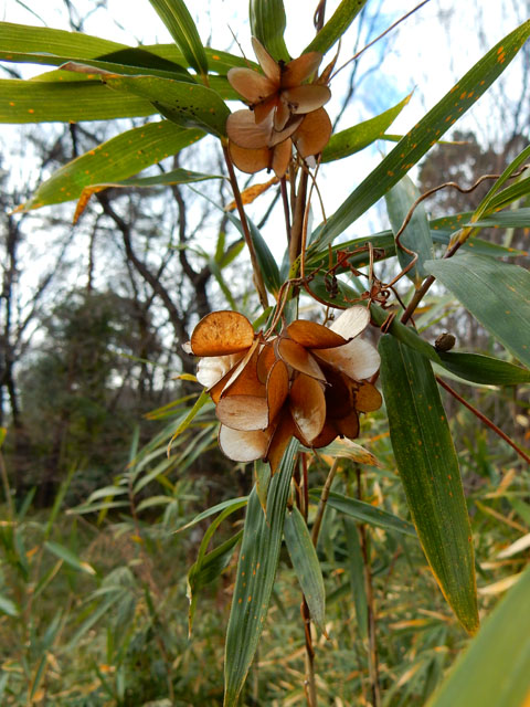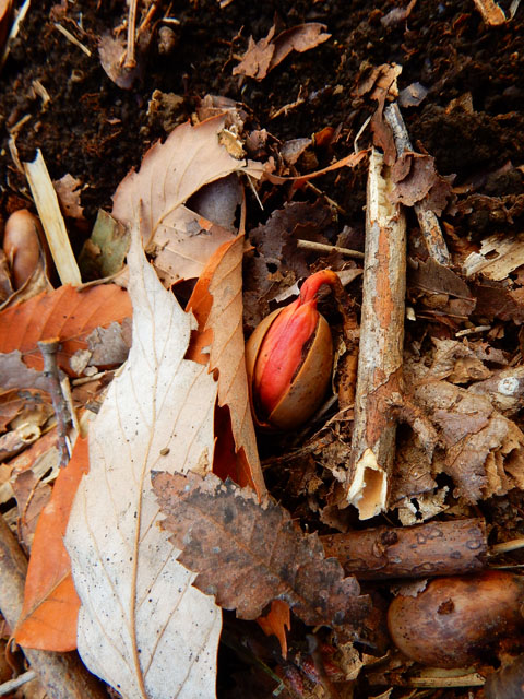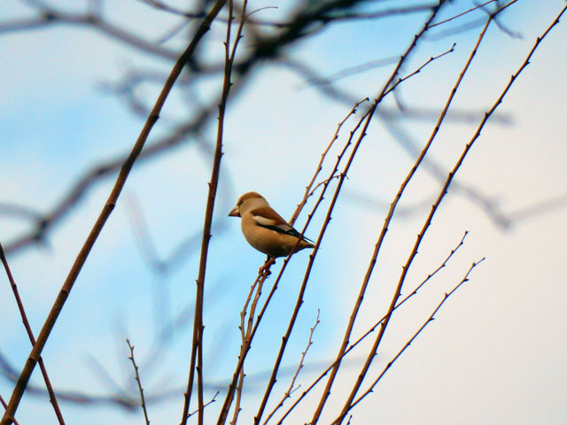 同じ高台の林では、シメの姿も確認できました。少し似ているイカルさんらとは違い、うちらが見かける時はたいてい1羽の単独が多いです。・°・。目とくちばしが大きいところがかわいくて好きです♪ 雑木林の中には笹藪が広がっていて、その間に落ち葉の厚く積もった けもの道が続いております。・°・。笹の枝先にはヤマノイモのツルと種がまだ絡みついておりました。・°・。ムカゴの成るシーズンには、ぜひムカゴ採取に訪れたいと思いました。・°・。●