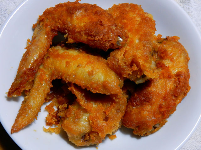 今朝も明け方から青空が拡がりました。・°・。しかし冷たい北風と残雪の冷気も加わって、寒さの身に染みる一日でございました・・(>_<); そんな寒さにもめげることなく、本日はブローチと帯留め作品の樹脂の注型作業を行いました。空気中の湿度が高いと硬化反応中に気泡が発生してしまうため、今日のような乾燥したお天気の方が作業には向いております。しかし、換気の為開放にしている窓からは外気が容赦なく入って来るので、アトリエ内はほぼ屋外と同じ気温となっており、本日の最高は6℃止まりでした。。(*_*) 樹脂の硬化時間は温度にも左右されるのですが、温度が低いほど長くなるので、ゆっくりと落ち着いて作業を進めるには、むしろ程よい気温でした。ただし・・身体がその寒さに耐えられればの話なので、防寒対策を万全にして臨み・・「挑み」ました・・・( ̄^ ̄)ゞ 1年程前にキャノーラオイルが安かったのでたくさん購入したのですが、昨年は忙しさが続いてなかなか揚げ物をする機会が少なくなり、そろそろ賞味期限も迫りつつありましたので、ここのところ積極的に油活用調理を推進しております。・°・。写真は手羽先揚げですが、一度揚がったものを少し冷ましてから、衣を再度まとわせて二度揚げにいたしました。粉を溶く際に水の代わりに焼酎を用いたこともあって、衣もパリッと揚がってサクサクとした食感でおいしくいただけました(o^-^o)♪