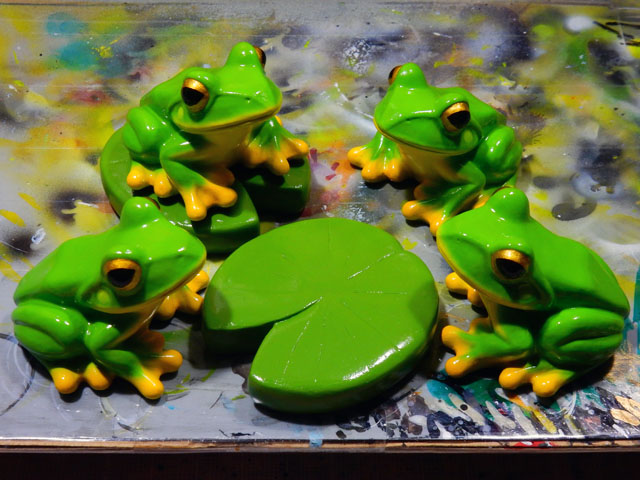 今日の午前中は東京地方にもみぞれ混じりの初雪が降って、暖冬と言えどもいよいよ冬本来の寒さが到来かな・・?と感じる朝でした。・°・。*そんな冬の寒さに負けないように、アパートの裏庭産の夏みかんを毎日1個ずついただいております。クエン酸たっぷりの強烈な酸っぱさで、疲労回復や風邪の予防にも大変役立っております。・°・。◎ 制作を続けて参りましたヤエヤマアオガエルのフィギュア作品たちですが、塗装を終えて表面に光沢剤を重ね塗りして完成いたしました。・°・。カエルたちが囲んでいる葉っぱは、ヒツジグサという水草です。ヤエヤマアオガエルをちょこんと載せてディスプレイしていただけるように、セットで販売しております。・°・。◎ 先日ゲットしたブロッコリーは随分と大きなサイズでしたが、伸び過ぎて間延びした感じではなく、つぼみも茎もしっかりとていて大変美味しい食感でございました♪ ゆで上がったブロッコリーにマヨネーズを付けていただくのが一番好きな食べ方です。・°・。◎ アトリエ☆イボヤギ 木村大介