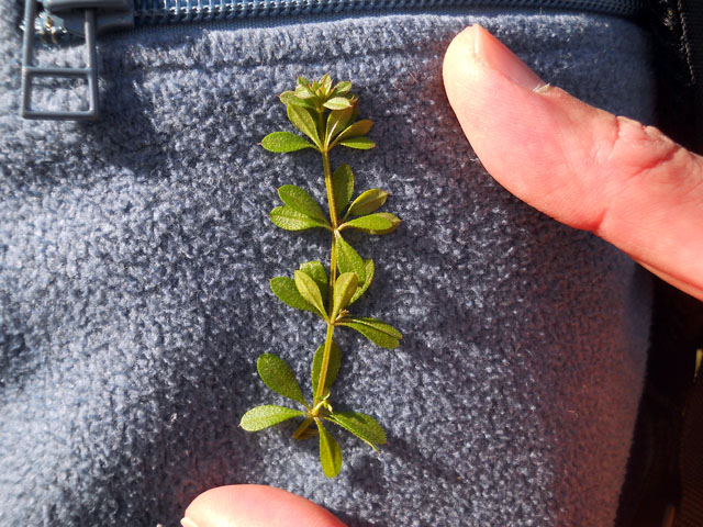 里芋を皮ごとゆでて軽く塩をかけていただくのが好きです。作業が押して夜遅くまでかかる時の夜食にも、割りと胃に優しくて助かります。・°・。◯ 近所の畑の陽の良く当たる斜面に、ヤエムグラが群生しておりました。久し振りに一茎摘んでフリースに貼り付けてみました。・°・。いっしょに歩いていた友人が良い香りがするよ、と言うので鼻を近づけると・・どこか懐かしい匂いがいたしました。・°・。* いよいよ年内までの営業となったニヒル牛2のお店の入り口で、先日きれいな宝石を見つけました。・°・。初冬の陽射しを受けてサイダー瓶と思われるその破片は、美しいエメラルド色に輝いておりました。・°・。*