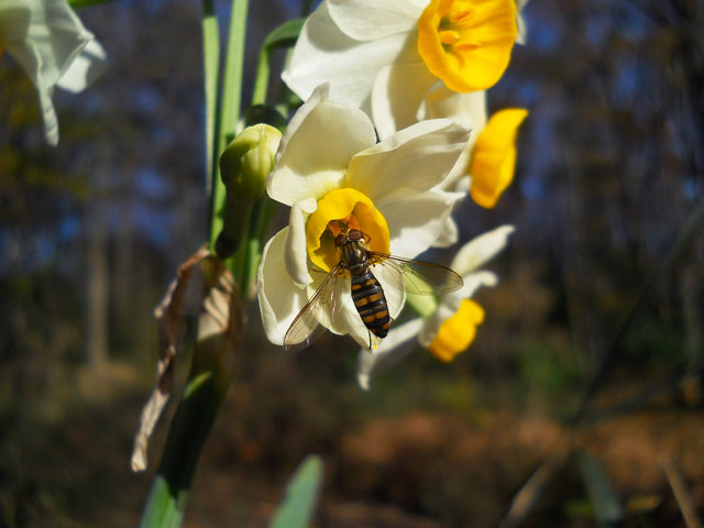 最近良く訪れている近くの雑木林で、今月半ば辺りから咲き始めた日本水仙の花ですが、冬の始まりのこの時期、限られた数少ない花の蜜源を求める虫たちにとっては、垂涎の的のようです。・°・。よく日の当たる、落ち葉の積もった暖かい場所で咲いている花々には、この日もハナアブの仲間たちが、巧みなホバリング飛行で花から花へ何度も訪れては、頭を花芯に入れて夢中で蜜を求めておりました。・°・。◎ 山芋にウズラの卵とかつお節をふりかけていただくのが好きです。熱々のご飯の上には焼き海苔を刻んだのを載せておいて、山芋を上からどっとかけてかき込みます。・°・。先日上野公園を歩いていて、カラスの羽根の一部を拾いました。どうやら長い羽の一部が折れてしまっていたようですが、それにしても全体が揃うと随分と大きな羽になるなぁ・・と感心いたしました。・°・。◆ アトリエ☆イボヤギ 木村大介