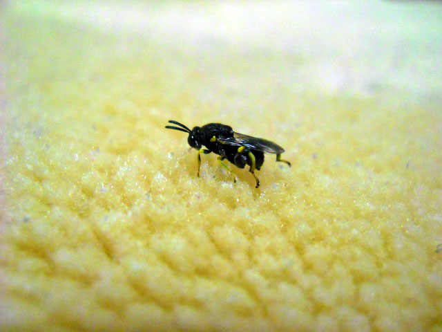 〈本日のタイトル解説:『 つぶらだね 黄色い脚太 小蜂さん。・°・。●▼● 』〉