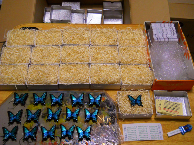 今日は冷え込みが厳しく午後から降り始めた冷たい雨の中、仕上がったカラスアゲハの帯留めとブローチ作品の納品&造形素材の買い出しへと出掛けました。・°・。はじめの写真はカラスアゲハの帯留めを、銀色の紙箱に紙パッキンを詰めた上に載せてパッケージィングしてるところです。・°・。お買い求めいただいたそれぞれのお客さまの帯の上で、華やかに羽ばたいて欲しいという願いを込めて送り出しました。・°・。上野動物園へブローチ作品を納品した後、野間馬の えりか号を眺めてゆきました。いつ見てもかわいい横顔に今回も癒やされました。・°・。(*'-'*) 本日の買い出し先の浅草橋駅近くの路上で、縁石のそばに赤いクワガタ虫がいるのを見つけました。。こんな寒い時期の都心部でクワガタに出会えるとは思いもよらなかったので、ちょっと感動を覚えた年の瀬の昼下がりでした。・°・。人通りの多い交差点でしたので、道行く人々に踏まれないことを祈りつつその場を 後にしました。・°・。('-'*)