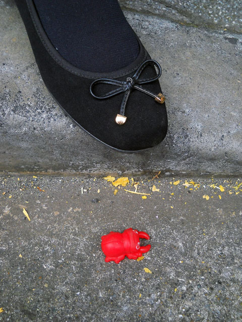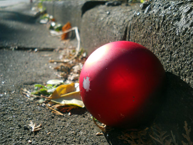 近所でもクリスマス飾りを施した邸宅をよく目にしますが、先日路上の隅に赤いボールが落ちておりました。。よく見るとそれはクリスマスツリーに吊り下げるオーナメントでした。・°・。迷子の赤球さんは朝陽を受けてまぶしく光り輝いておりましたが、元居たクリスマスツリーから離れてしまって、メッキ塗装も一部剥げかかっていたせいでしょうか。。少し寂しげな風情も感ぜられました。・°・。◯ 先日直したばかりの我が愛車の後輪ですが、しばらく走るうちに少しずつエアー漏れを起こしていることが判明いたしました・・(-_-;) やはりタイヤのチューブ自体が経年劣化によりだいぶ傷んでしまっている為かなぁ・・?と考えて、再び修理する前に近所のディスカウントストアーで予備の交換タイヤを購入しておきました。さて、またタイヤチューブを取り出して、タライに張った水に浸けて穴探しを始めました。・°・。先日直した箇所から離れた場所で小さな穴を発見したので、修理キットでしっかりと塞ぎました◎ 今日は片道3キロ程離れたお店に買い出しに行く予定でしたので、エアーを満タンに充填し直して出掛けました。・°・。ところがです・・お店に着いた頃には既に弾力を失い始めていて、修理は失敗に終わったことを自覚いたしました・・(>_<); 幸いにもそのお店で空気入れを借りることが出来たので、無事に帰宅することが叶いましたが。。近々に新品のタイヤ交換を行うことにいたしました。・°・。(*´-`)/