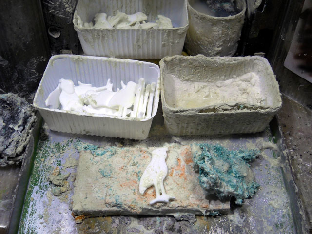 方々のお店で買い出しを済ませて早目に帰宅し、熱々の肉汁うどんをこさえて遅めのお昼ご飯をいただきました。長ネギもだいぶお手頃プライスになって来て、ネギ好きとしてはうれしい季節になりました♪ 食事で温まった後は、再びアトリエに戻りハシビロコウを始めとした、レリーフアイテムの制作を再開いたしました。写真はハシビロコウのクチバシの模様を描き入れているところです。・°・。◎ アトリエ☆イボヤギ 木村大介
