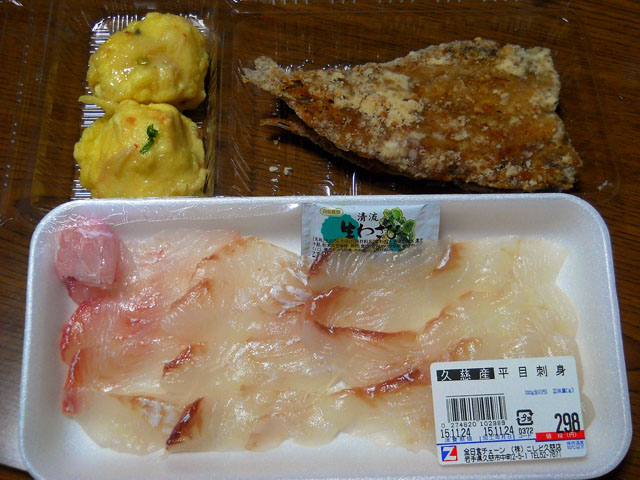 夕食は道の駅にある鮮魚やご当地お惣菜を扱っているスーパーで、好きなモノをいろいろと買い揃えて、地酒と地ビールでおいしくいただきました(o^-^o) 特にどんこ(エゾイソアイナメ)は鮮度が落ちやすい為、おもに地元でしか流通していないようで、塩焼きにしたものを初めて食べましたがとてもおいしかったです♪ 他にも平目の刺身やマイワシの竜田揚げ、あんかけ蟹玉豆腐揚げなどもお酒の肴に最高のお味でございました・・(≧▽≦)!。・°・。アトリエ☆イボヤギ 木村大介