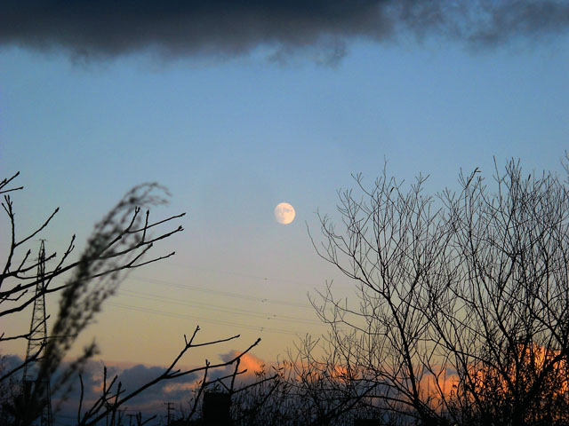 予約していた宿に先に荷物を置かせていただき、街歩きを楽しみました。・°・。久慈駅で三陸鉄道の車両を眺めて記念スタンプを押したり、長内川沿いの土手を久慈川との合流点まで歩いたりしました。河口方面、海側の空に目をやると満月まであと少しの明るいお月さまが昇り始めておりました。雲の流れがとても早くて、西の空も雨雲の間にぽっかりと明るい晴れ間が見え隠れしていました。・°・。*