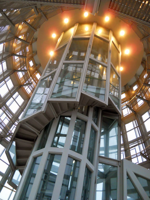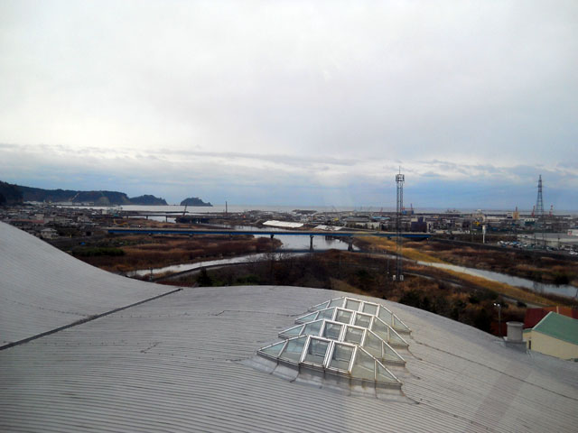 久慈市文化会館「アンバーホール」の地上28メートルにある展望台に昇りました。アンバーとは英語で琥珀(こはく)という意味だそうで、地元名産の琥珀にちなんで付けられたそうです。波型をした本館の正面に三角錐のガラス張りの塔があって、エレベーターで昇ると360度の展望が開けましたヽ(´▽`)/ アトリエ☆イボヤギ 木村大介