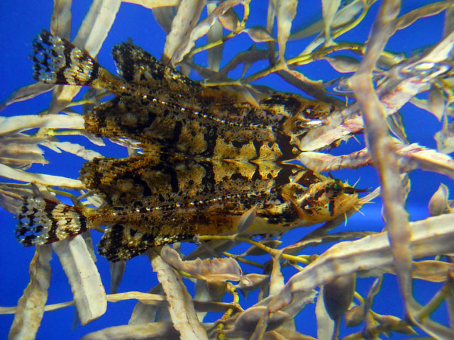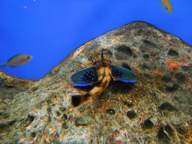 スレもなく模様の綺麗なサザナミフグと同居のネコザメさんは仲睦まじいようで・・?お互いに小迫り合うこともなく平和に共存されているようでした。・°・。背びれの間からのぞいたサザナミさんの顔に思わず笑みがこぼれました♪ マハタと同居しているオキゴンベさんはどうもマハタとは気が合わないみたいで、不意に近づいては追い払われておりました。・°・。好奇心旺盛で別々によく動く目は、愛嬌たっぷりでとてもかわいいおさなかです。・°・。* 久慈の海コーナーの水槽で観たイソバテングさんは、別名サチコと呼ばれているそうですが、名前の由来は不詳のようでした。ナマズみたいなたくさんのヒゲと、海藻のような複雑な模様をした不思議なおさかなでした。・°・。*