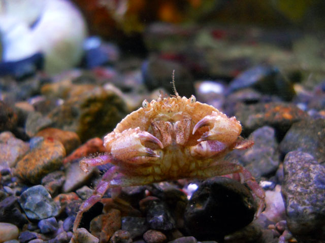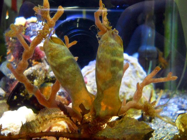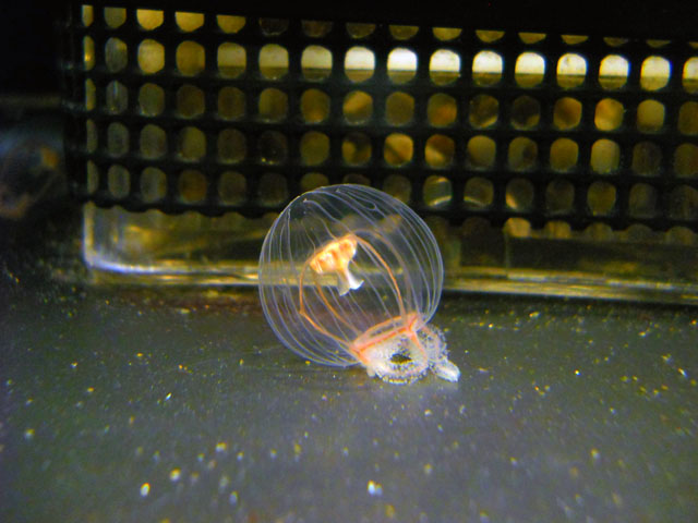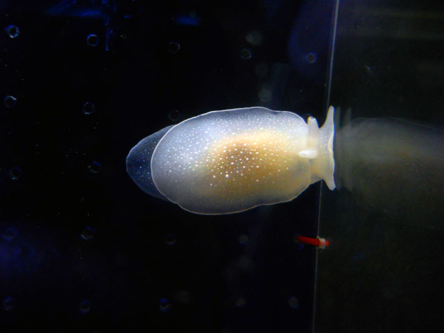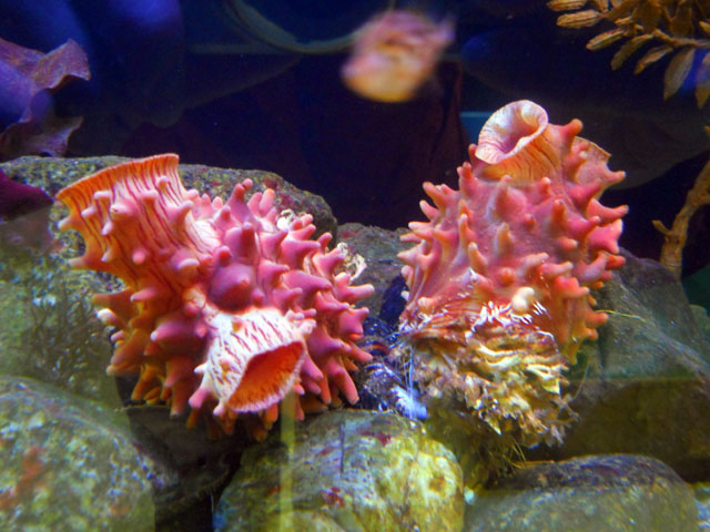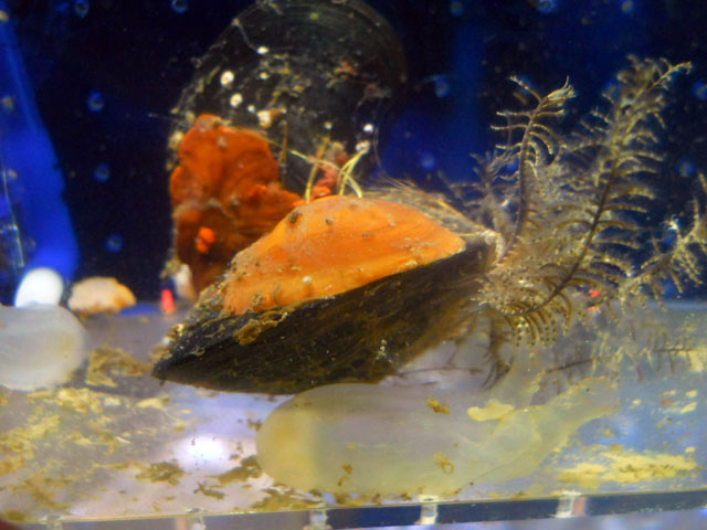 水槽の濾過器の吸込口にいた、透明感のある赤茶色をした大変美しいエビが印象的でしたが、残念ながらお名前は判りませんでした。・°・。イガイの上にメンダコの赤ちゃんがいる?!と、思ったら・・似たようなオレンジ色をした海綿の見間違いでした。。(*´-`)