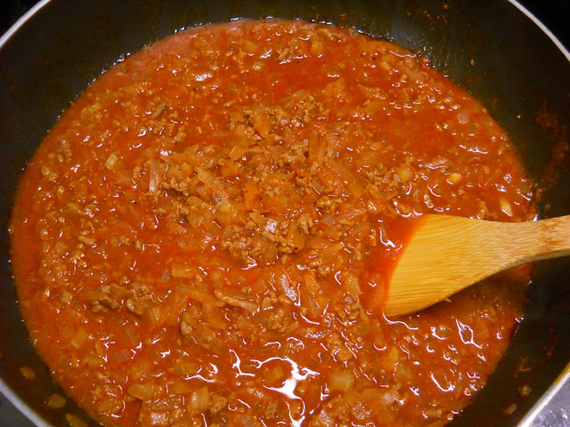 今回は牛豚合いびき肉200グラム、玉ネギ大玉2個、セロリ一本を細かく刻んで、オリーブオイルで炒めてから、トマトベースの野菜ジュースでくつくつと、とろ火でじっくり煮込みました。味付けは黒胡椒とナツメグそして食塩とシンプルに仕上げております。・°・。ゆでたてスパゲッティにお玉で山盛り二杯を掛けて、ミートソースたっぷりのパスタを、お腹いっぱいおいしくいただきました(o^-^o)♪