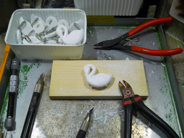 今日は一日どんよりとした雲に覆われて、寒さを感じる日になりました。・°・。今朝はルコウソウの花は咲いておらず、白い朝顔が二輪だけ開いておりました。・°・。寒さとうす暗い空のせいでしょうか? 花は昼過ぎになっても開いたままでした。花色は真っ白ではなく、スポット的に薄紫色がほんのりと入っていて、上品なたたずまいでした。・°・。* ブローチ制作の方は塗装作業が一段落したので、帯留め作品の制作に入りました。写真はコブハクチョウの帯留めのバリ取り作業を行っているところです。素材整形の際に、型からハミ出した素材を「バリ」と呼びますが、まずは大まかな部分をニッパーで切り落としていきます。・°・。* しばらく振りに自家製ミートソースをこさえました。お昼は麺類を食べることが多いのですが、ミートソースはいつも数食分をまとめて作るようにしております。・°・。◎