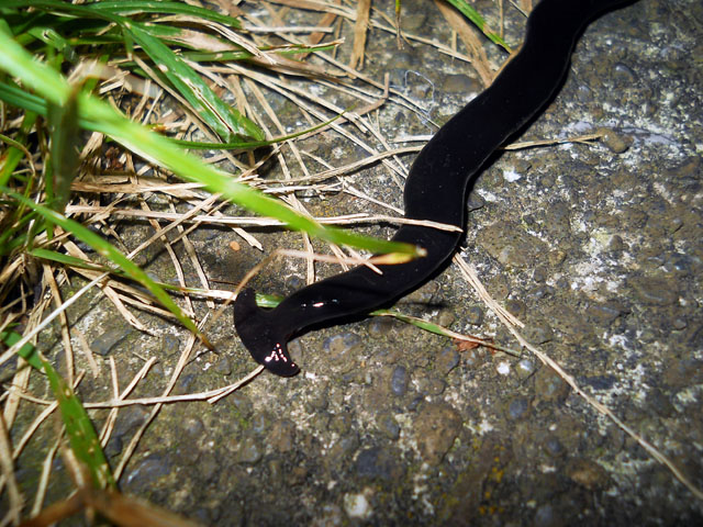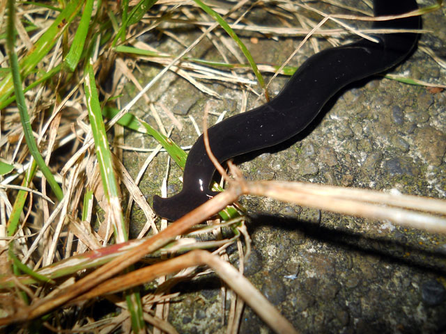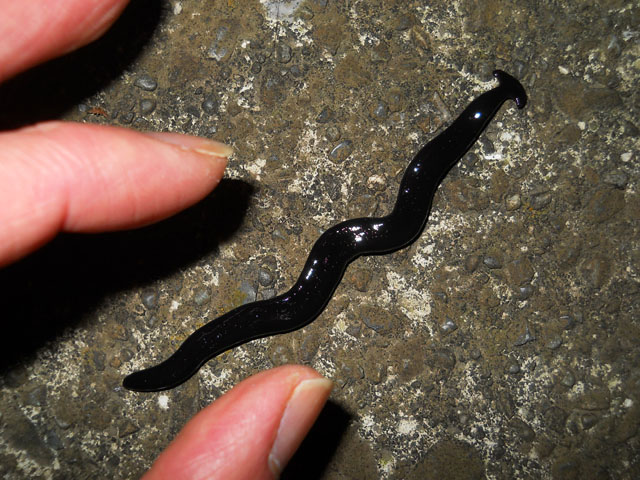 日没後に洗濯物を取り込んでいると、コンクリート製の踏み石の上を、黒光りした細長いものが、こちらに向かって這って来るのが認められました。。近づいてみるとそれはやっぱりクロイロコウガイビルさんでした。・°・。*指を出した写真はサイズ感を示すためで、つまんだ訳ではございません。。。・°・。乾いたコンクリの上を思いの外、速いスピードで進んで行かれましたが、障害物に当たると頭の先で確認しながら慎重に進んでおられました。・°・。果たして今夜はナメクジディナーにありつけるでしょうか。。?。・°・。アトリエ☆イボヤギ 木村大介