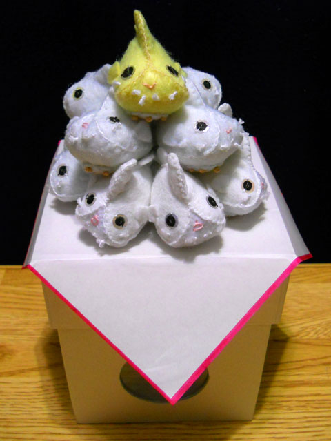 そして今夜のために、魚眼亭さんに特注してあった作品「お月見ダンゴウオーズ」もできたてホヤホヤで本日届きました♪ 白色と黄色のダンゴウオ達を、お月見にお供えするお団子に見立てた作品で、ちゃんと三宝の上にお行儀よく積み重ねられていて、慣わしの通りメンバーは総勢十三尾おりますヽ(´▽`)/ 今夜はかわいいダンゴウオたちを眺めながら、一足早いお月見とおいしいお酒を味わいました。・°・。◯ アトリエ☆イボヤギ 木村大介