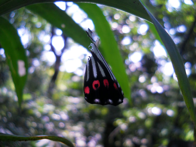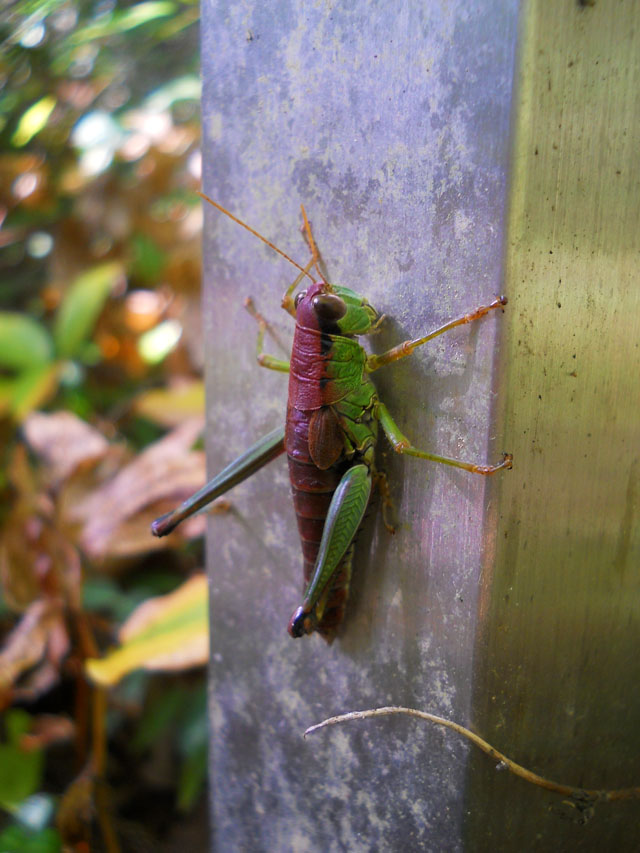 休憩ポイントでお茶を飲んでいると、見上げた梢の先にアサギマダラの姿を見つけました。・°・。尾根伝いのコースなので風に乗ってたどり着いたのでしょうか・・? 留まっていたのは、柑橘系のとてもよい香りのする、小さな白い花をたくさんつけた樹でした。・°・。木道の上に差し掛かると、足元にミヤマフキバッタがおりました。初めて観る種類でしたが、トノサマバッタに負けないくらいカッコいいバッタさんでした。成虫でも羽が短いということを後で知りました。しばらく歩くと同じくフキバッタの仲間で、初めて観るメスアカフキバッタさんにも出会うことが出来ました(^-'*)! メスの背面はきれいな赤褐色をしていて、かなりおしゃれなデザインに見惚れました。。こちらも成虫でも羽は短いままとのことでした。・°・。*