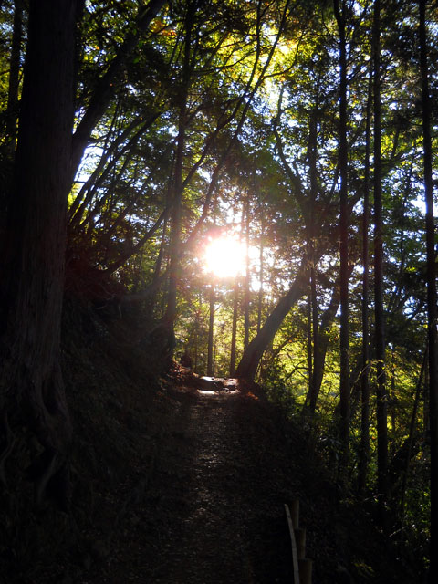 今日も朝から快晴の青い空が拡がって、絶好の行楽日和に恵まれる中、高尾山の初登頂に出かけました。・°・。割りと近くに住んで10年になりますが、まだ一度も訪れたことがございませんでした。。中央線に乗って間もなく着いた高尾駅は登山客でにぎわっておりました。・°・。最初の写真はケーブルカーの始点の清滝駅ですが、今回は乗らずに尾根伝いを通る稲荷山コースから登り始めました。・°・。登山口で迎えてくれたのは、アザミの花を訪れていた背中の金毛が輝いて美しいトラマルハナバチさんでした。・°・。所々に生えているアオキの葉の上にはオオナミザトウムシさんがいて、薄暗かったのでストロボを焚くとサッと長い脚を縮めて身を伏せました。。何枚か撮るたびに同じ動きをしたので、きっと危険を感じて反射的にそうしたのだと思われましたが、驚かせてしまったことを詫びつつ、先へと進みました。・°・。*