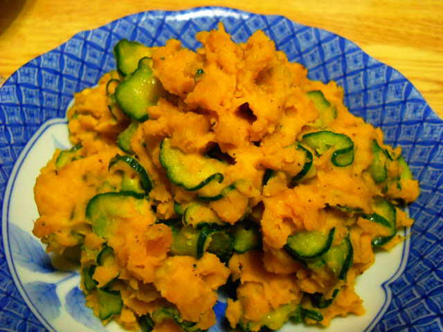 ハロウィンが近いからという訳ではございませんが、最近かぼちゃをたまたま値引きゲットする機会が重なったので、友人がカボチャメニューをいくつかこさえてくれました。・°・。写真はキュウリとカボチャのサラダですが、ポテトサラダ好きとしては似ている食感と、意外とあっさりとした点が気に入っております(o^-^o) アトリエ☆イボヤギ 木村大介