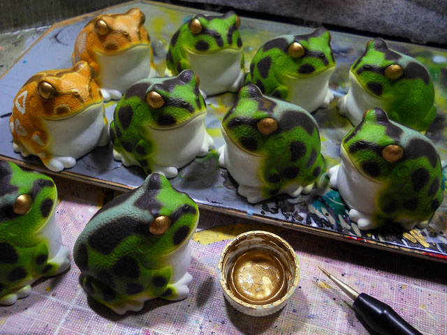 今朝、石巻在住の知人が訪ねて来て穫れたての新米を届けてくださいました。・°・。ヽ(´▽`)/ 秋の味覚を新米ご飯でよりいっそうおいしく楽しめそうです(o^-^o)♪ アトリエではチャコガエルの塗装を進めました。写真は目玉のベース色となる金色を施しているところです。メタリックカラーは粒子濃度が均一になるように、濃くなり過ぎないよう何度か重ね塗りすることでムラを防いでおります。・°・。市営グラウンドの奥にある雑木林には、いたるところに張り巡らされたジョロウグモさんたちの巣を目にしますが、そんなちぎれ糸に絡まったのでしょうか・・? アカボシゴマダラさんのよく目立つ赤星柄の羽が目に留まりました。・°・。林内を流れるそよ風にあたって旗のようにゆれておりました。・°・。●◎