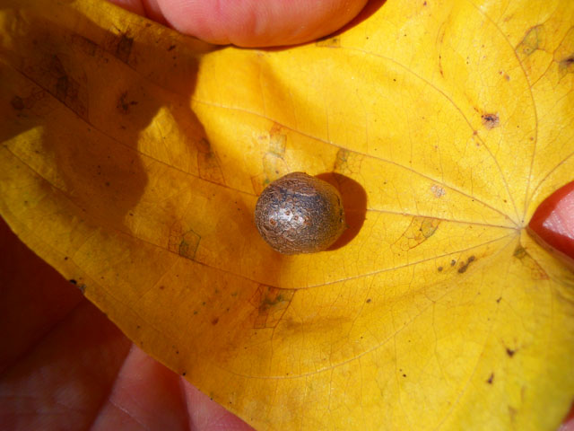 今日の散策ではコゲラを間近で観察したり、ウグイスが突然目の前に飛んで来て、笹の枝先に捉まってこちらを凝視した後、再び飛び去るといったうれしい出会いもありました♪。・°・。高い枝先でエサをついばむエナガやシジュウカラの群れも多く見られました。・°・。笹藪に生えたヤマノイモの黄葉した葉の付け根には、まだムカゴが数個残っておりましたので、ツルをたぐり寄せますと反動でぽろぽろと枯れ葉の海に落ちてしまいましたが、ひと粒だけ拾い上げることが出来ました。。あとで新米といっしょに炊いて、ムカゴご飯(ひと粒だけですが・・(笑))にしようと大切に持ち帰りました。・°・。(o^-^o)
