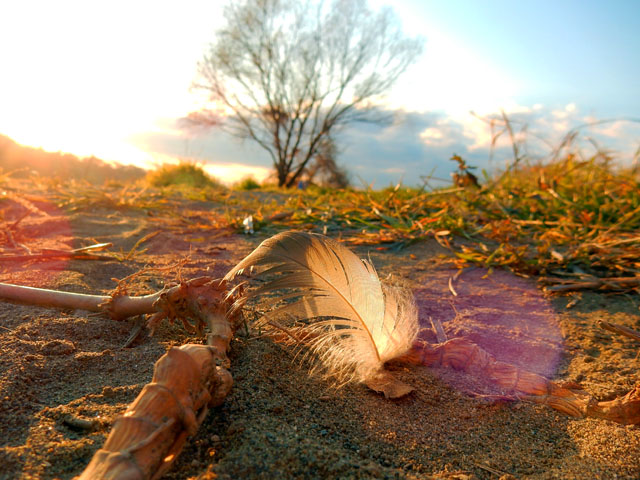 川砂の吹き溜まりを歩いていると、鳥の羽が砂地に羽軸の先を差して風にゆられておりました。・°・。土手に生えた小木の枝先にカマキリの卵鞘の一部が残っておりました。・°・。昨シーズンに無事に孵化した後なのか、あるいは濁流に飲まれてもぎ取られてしまったのか分りませんが、河川敷の小さな生き物たちのドラマを感じました。・°・。* ラストの写真は近所の富士見スポットで撮った今宵の夕景です。・°・。先日とは違い雲一つない澄み渡った茜色の空に、富士山の輪郭もくっきりとシャープに見えました。・°・。*アトリエ☆イボヤギ 木村大介